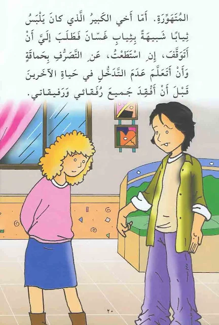 أَمّا أَخي الكَبيرُ الَّذي كانَ يَلْبَسُ ثِيابًا شَبيهَةً بِثِيابِ غَسّانَ فَطَلَبَ إِلَيَّ أَنْ أَتَوَقَّفَ ، إِن اسْتَطَعْتُ، عَن التَّصَرُّفِ بِحَماقَةٍ وَأَنْ أَتَعَلَّمَ عَدَمَ التَّدَخُلِ فِي حَياةِ الآخَرينَ قَبْلَ أَنْ أَفْقِدَ جَميعَ رُفقائي ورفيقاتي.